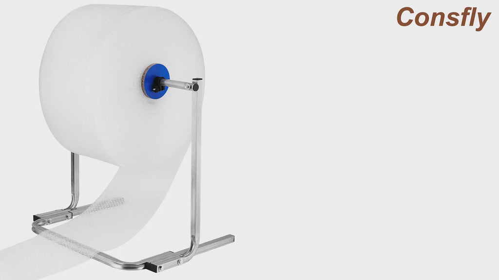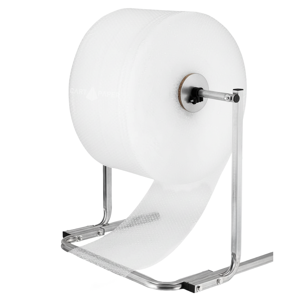 Optimiza tu mesón de trabajo con el único dispensador diseñado para bobinas industriales de plástico burbuja y cartón corrugado. Su diseño robusto permite montarlo en cualquier mesa de empaque sin necesidad de perforar